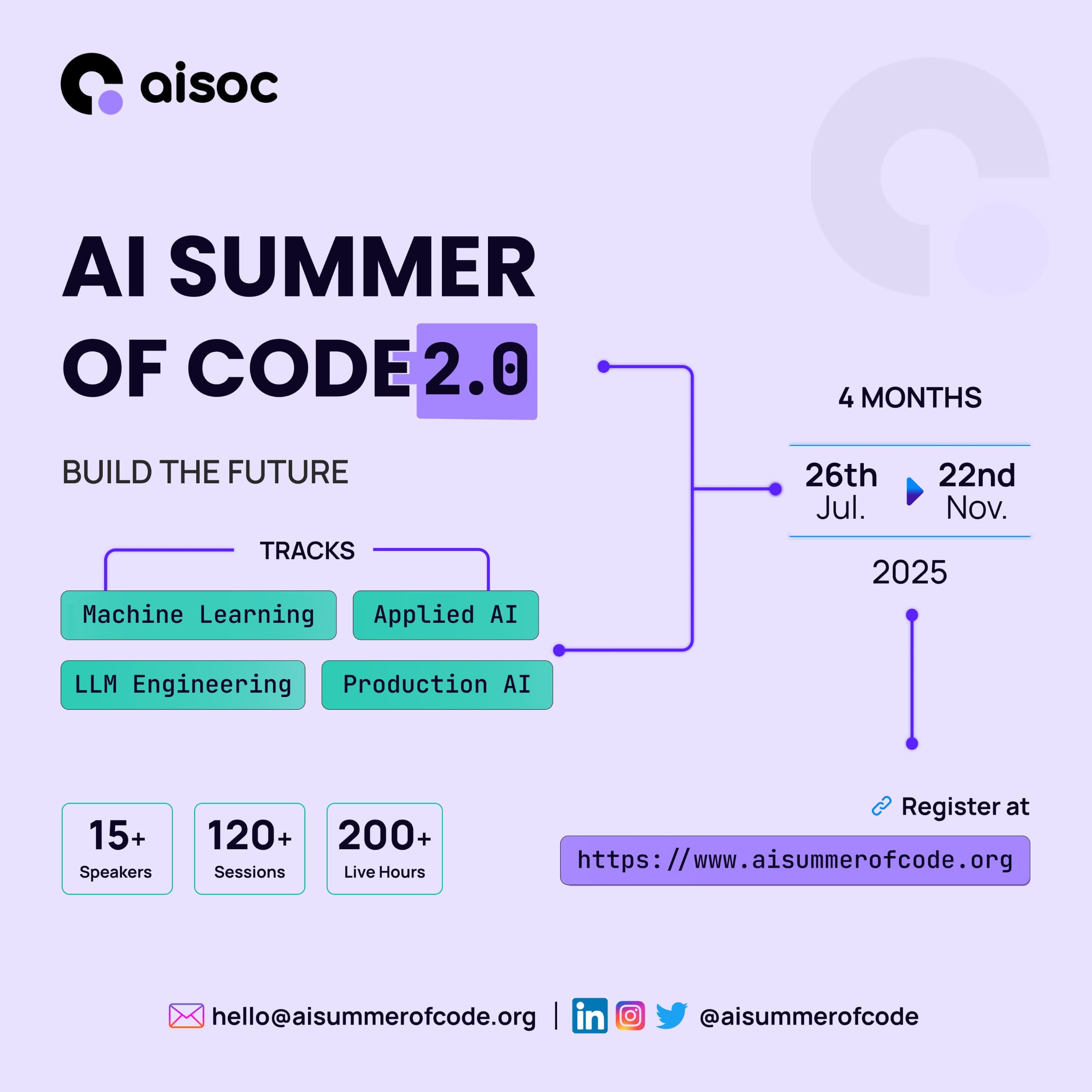 The AI Summer of Code (AISOC) is back with a bang! And we set the ball-rolling with our first Twitter Space on the 5th of July, 2025. AISOC is the world's largest community for incubating AI talents - an annual convergence of global AI experts with enthusiastic learners worldwide seeking to upskill and excel in the science and engineering of AI systems.